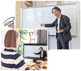 WEBカメラをテーブル側から映した場合、板面が筆記者の体で隠れたり、天井の照明が反射して見えにくいことも。 Creative Board CB+はそうしたストレスもなく、全員が議論に集中できます。