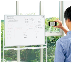 板面に書いた手書き文字を撮影して、OCR機能でテキスト化された文書をメールで送付。 議事録作成の手間を削減します。