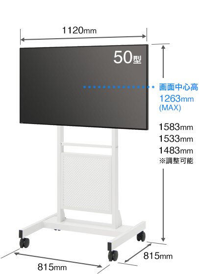 重厚感よりもディスプレイを引き立てるシンプルさを追求しつつ、カジュアルになりすぎず、オフィスやビルのエントランスにも溶け込むスタイリッシュなデザインを目指しました。キャスター付なので移動も簡単です。