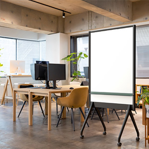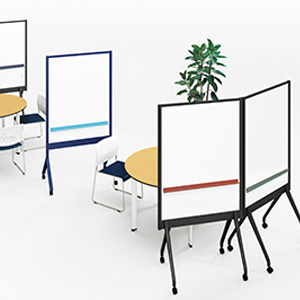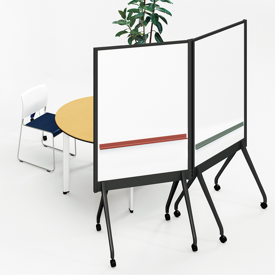 ALKUシリーズは、デザイン性と機動性を兼ね備えたスリムタイプのパーティションホワイトボードです。スマートな脚形状により、移動時の安全性と安定性を両立。スタッキング収納にも対応し、限られたスペースでも効率的に活用できます。オフィスや教育現場での柔軟なレイアウトに最適な製品です。