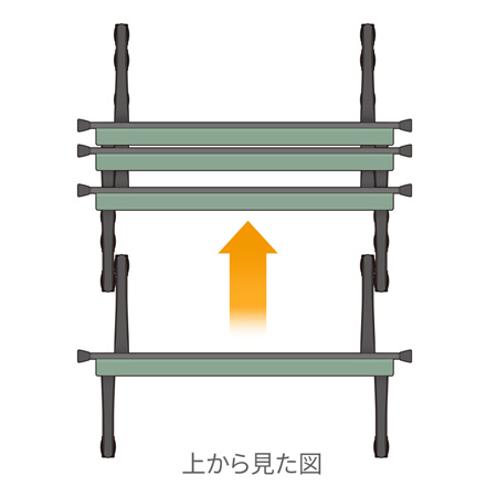 本体前後で脚の位置が違うので、平行スタッキングで収納できます。