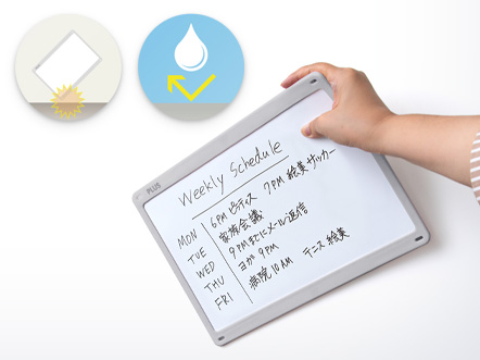 「小型壁掛けホワイトボード やわらかフレーム」は、柔らかな印象と高い安全性を兼ね備えた、家庭やオフィスに最適なホワイトボードです。フレームには衝撃や水に強いエラストマー素材を採用し、角のない丸みのあるデザインと、空間にやさしく馴染むナチュラルな色合いが特長です。壁掛けは紐とマグネットの2通りに対応し、設置も簡単。プラス独自の水性塗装鋼板により、消去性にも優れ、快適な書き心地を実現します。