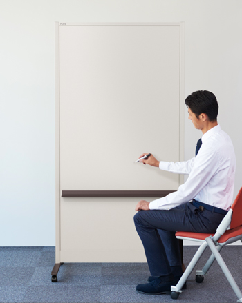 省スペース型の縦長形状。座ったままでも書き込みしやすく、ミーティングがスムーズに進行できます。スチール鋼板なのでマグネットによる掲示も可能な両面ホワイトボード仕様です。